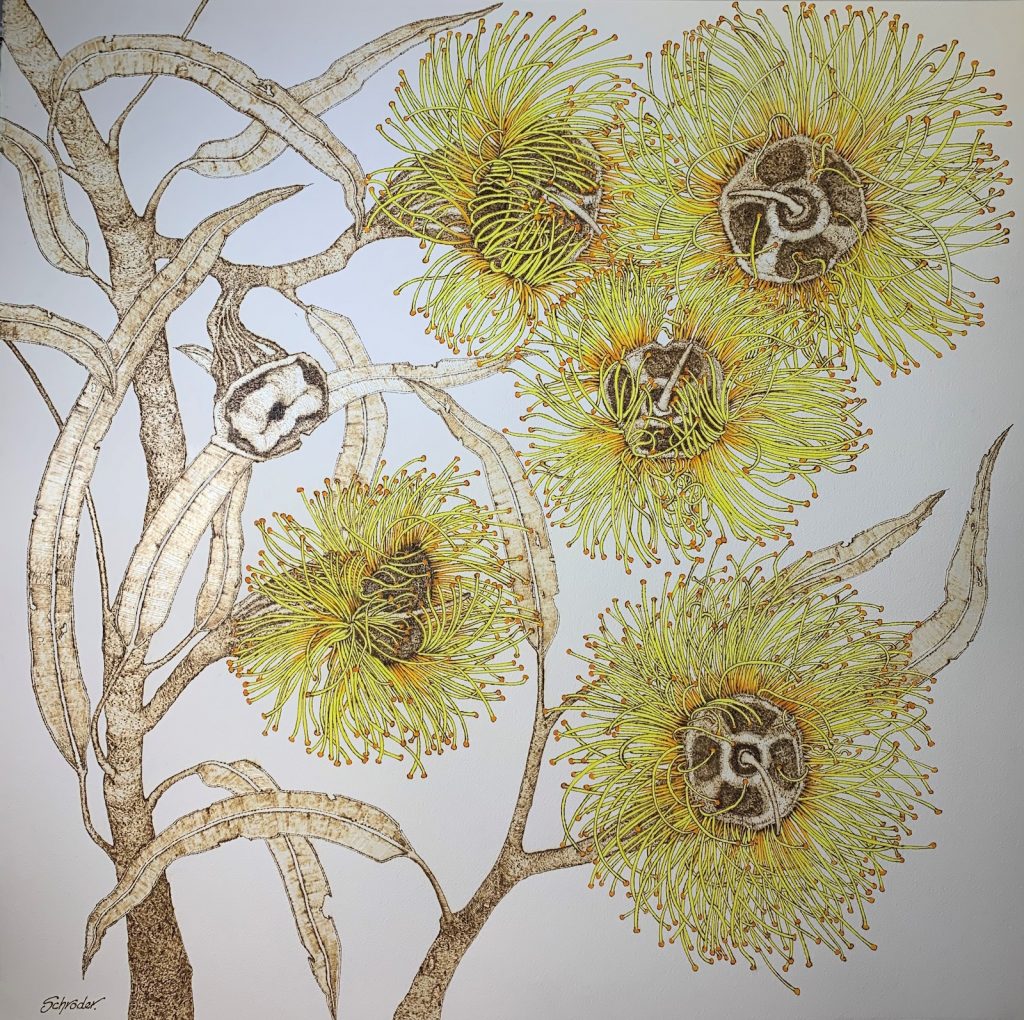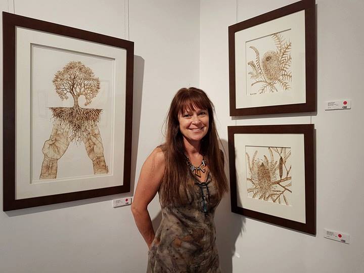 Sandie has had many close calls when creating these pieces, with some literally going up in smoke as the burning got out of control, reinforcing the ever present threat of fire, living amongst our volatile bushland.