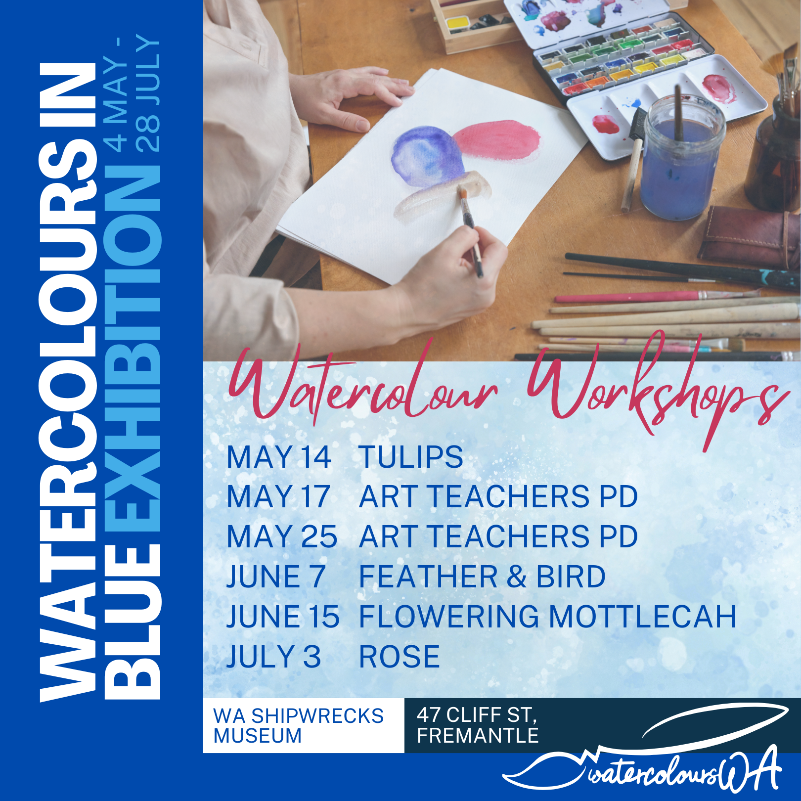 As part of the Watercolours in Blue Exhibition being held at the WA Shipwrecks Museum, we are pleased to announce the following workshop opportunities. These workshops are open to the general public and WatercoloursWA Members.