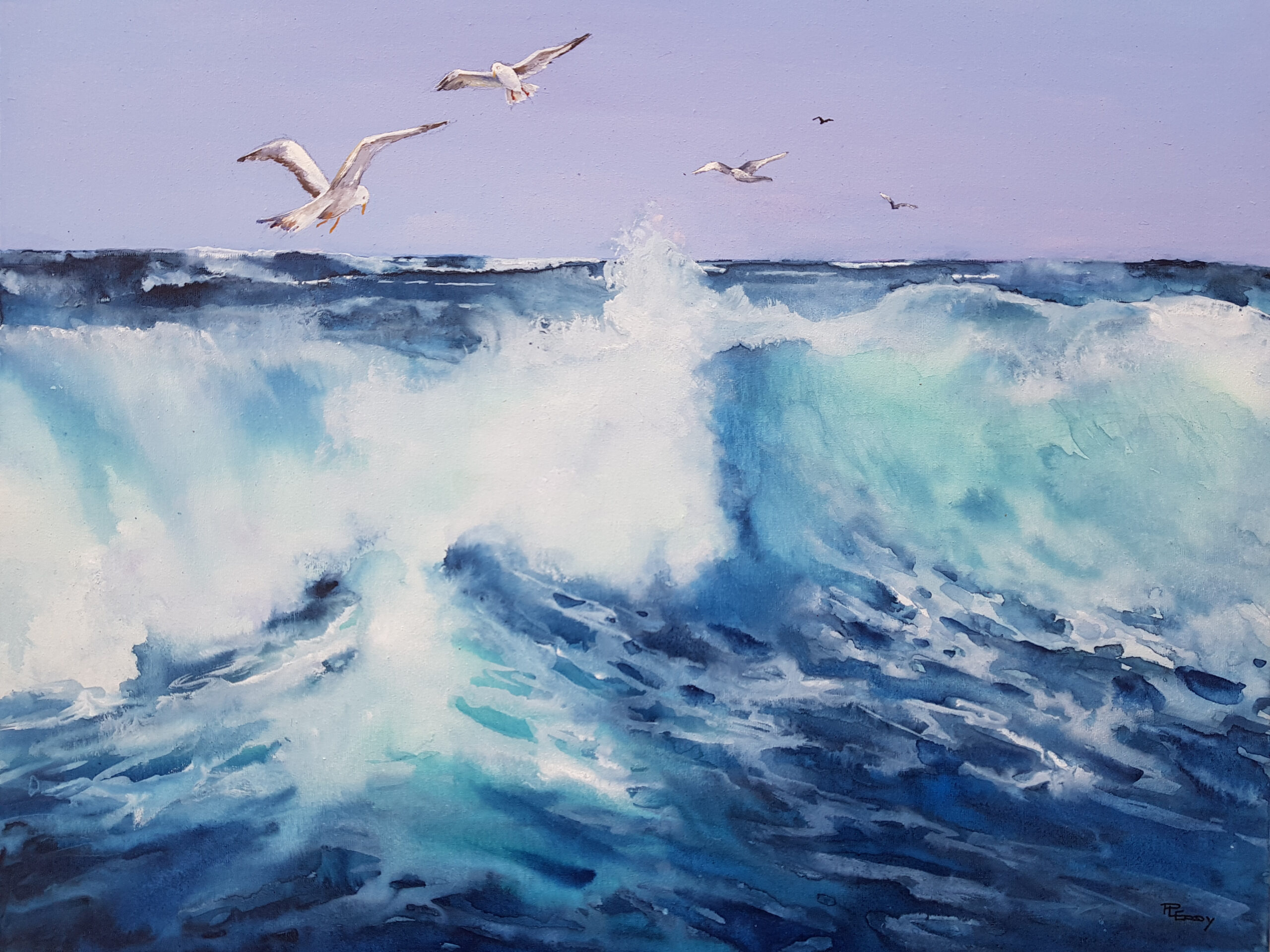 Through a love of nature she enjoys painting florals, landscapes and seascapes in a realistic or impressionist realism style and has added working watercolour on yupo and watercolour canvas in a semi-abstract style.